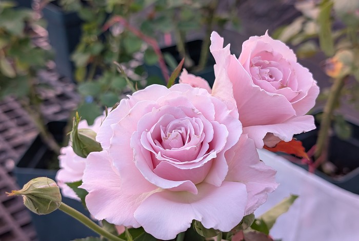 產品規格為3.5吋黑軟盆,盆口直徑約12公分、深15公分;植株高度含盆約30~60公分;嫁接方式為靠接,砧木為多花野薔薇(無刺砧木),僅採3~5公分高的枝條作為砧木。
