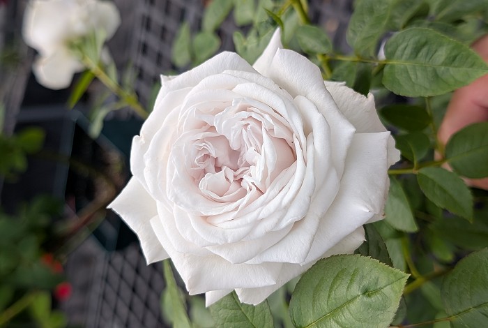 產品規格為3.5吋黑軟盆,盆口直徑約12公分、深15公分;植株高度含盆約30~60公分;嫁接方式為靠接,砧木為多花野薔薇(無刺砧木),僅採3~5公分高的枝條作為砧木。