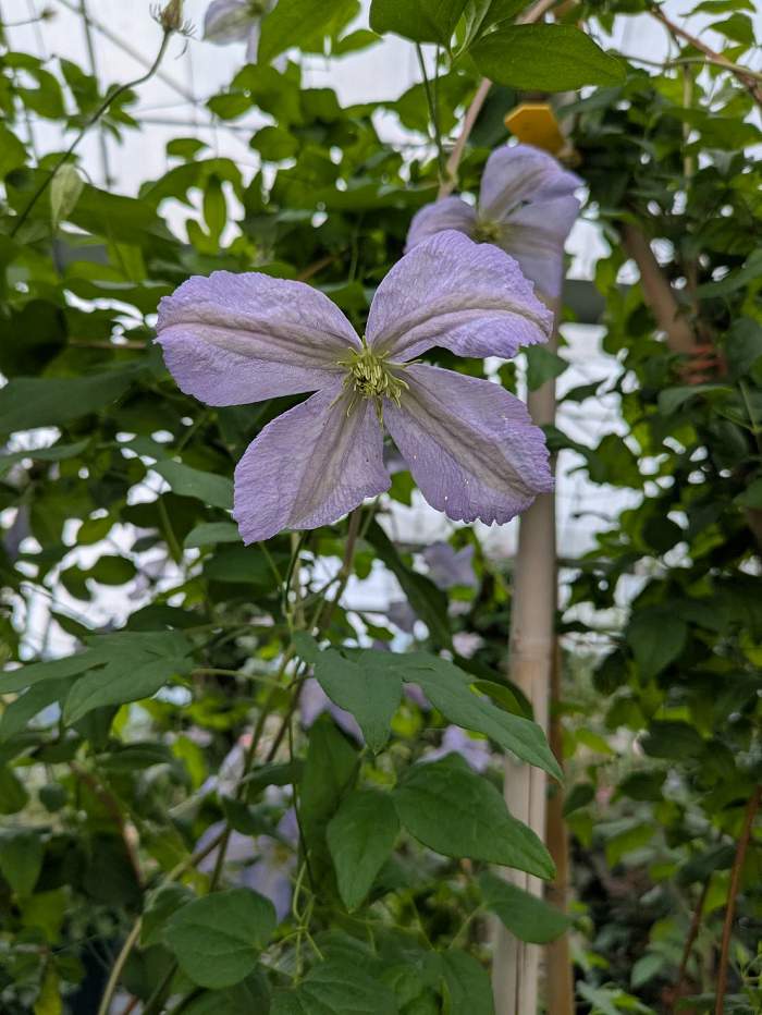 艾蜜莉亞普萊特長勢粗壯強健,不同於大部分義大利組外型纖細,其枝葉都較為粗大,淺藍紫色花搭配花肋中央的紫紅色條紋漸層十分優美。
