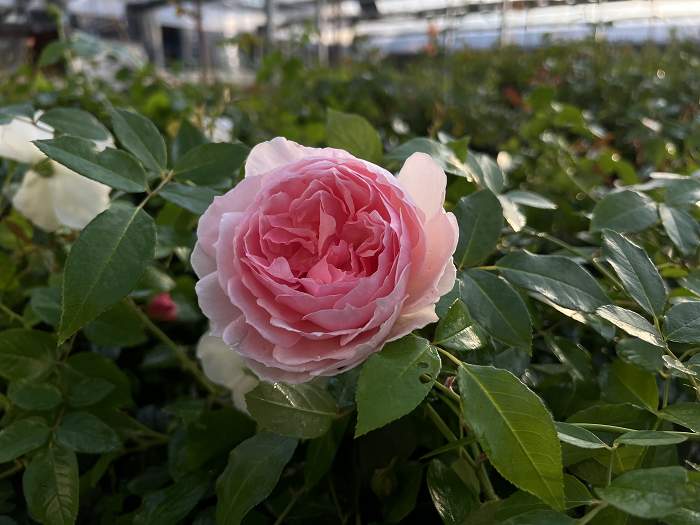 英國玫瑰、粉紅色,圓瓣杯型花。強烈的香味。四季開花的古典花形玫瑰,花園一定要有一棵這個品種~