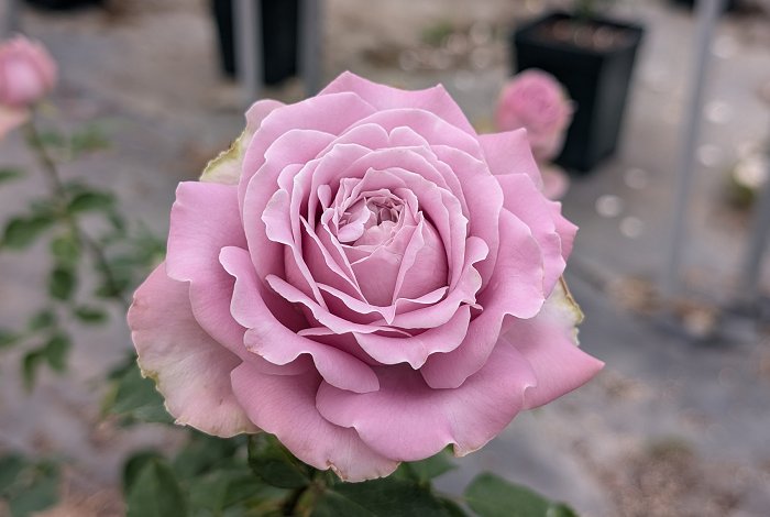 產品規格為3.5吋黑軟盆,盆口直徑約12公分、深15公分;植株高度含盆約30~60公分;嫁接方式為靠接,砧木為多花野薔薇(無刺砧木),僅採3~5公分高的枝條作為砧木。