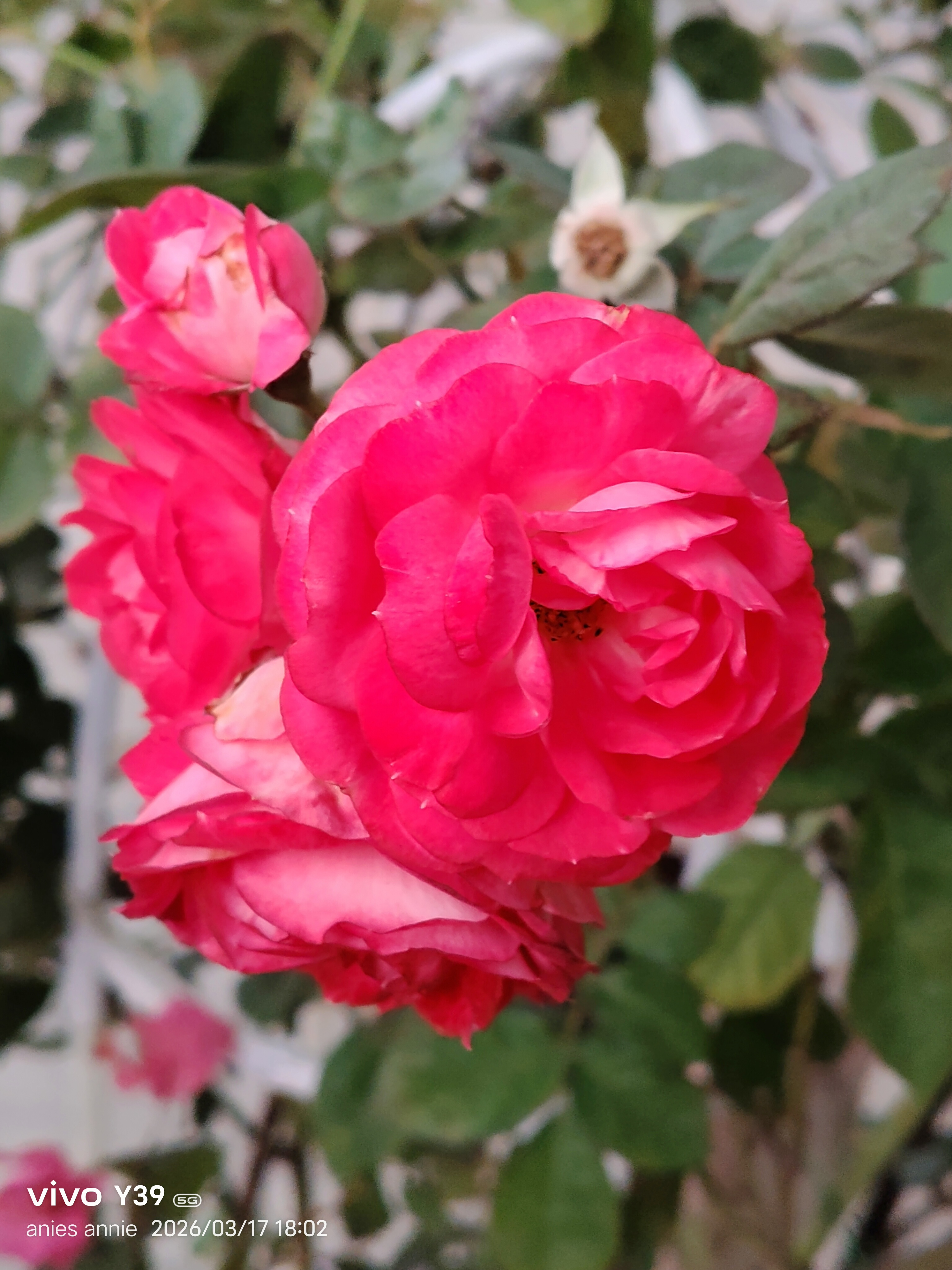 喜歡這紅色,花開期間顏色幾乎不變,花期長無香味。枝幹硬,刺又多又硬。