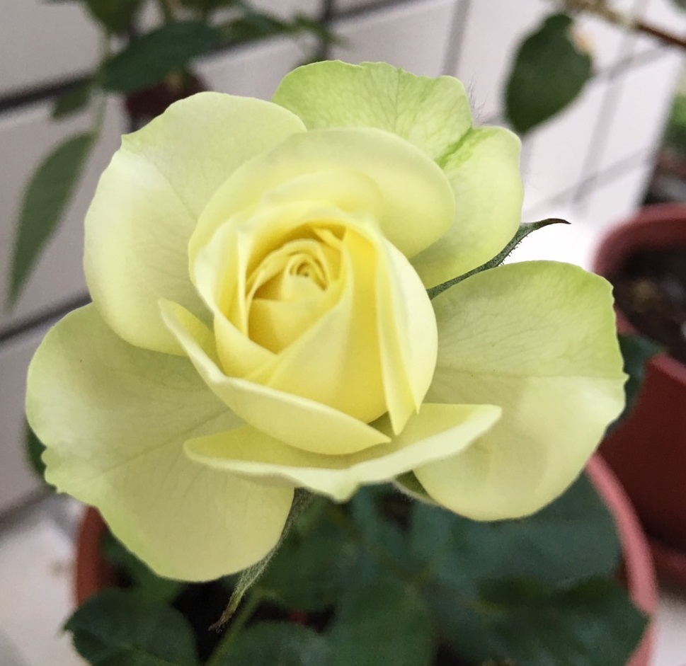 108.10.13 胡立歐 檸檬強香 花徑約8到10公分,花瓣紅色的部分有絨布質感,很會開