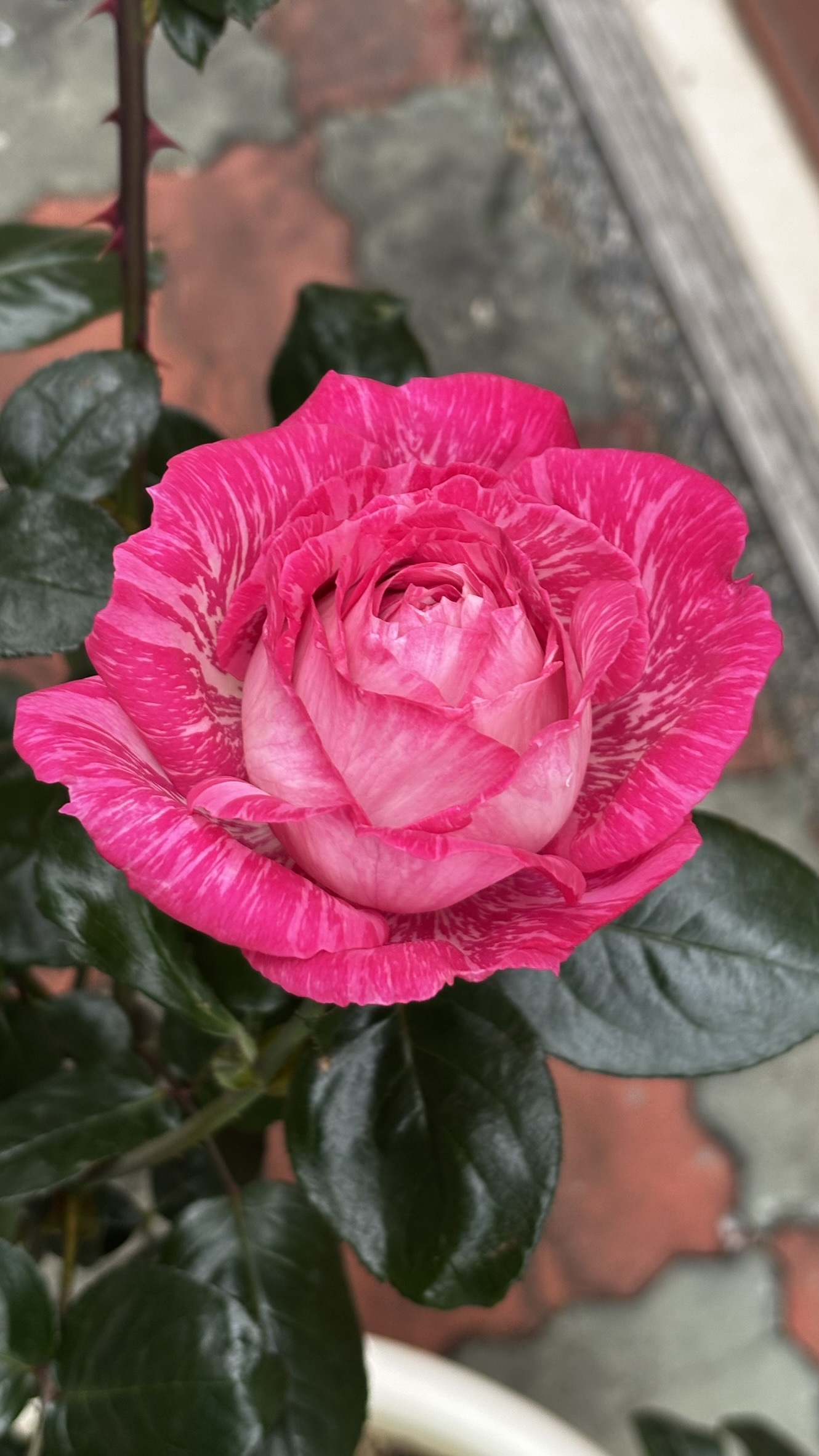 2025/4/22 越來越張狂了,張狂的花型,張狂的長勢,張狂的花量,張狂到深得我心,花朵還不小,植株越大,表現就越張狂.種久了,就懶得照顧了,能不能省心,能不能放著不管,就能開出效果,才是我最重要的要求,就算種一排,我也覺得很值得,拍張照紀念先. 米拉馬雷