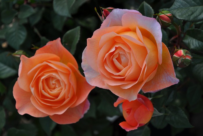 橘色的杯型中輪花朵,一莖多花,成簇綻放。隨著花開,花色從橘色,變化成杏色、淡杏色。從圓滾可愛的花朵,綻放出鬆柔大方的花朵。散發出果香融合了茶香與青草香的強香味。
