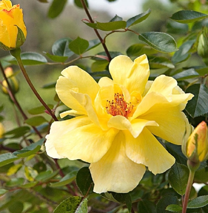 大型蔓性品種可達4公尺長,少刺強健,季節反覆開,花期集中春秋兩季但四季皆可不定期開放。難得的黃色蔓玫。