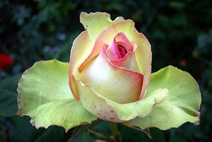 切花,黃綠色瓣略滾粉紅邊。ps.夏天花會變成淡粉色。