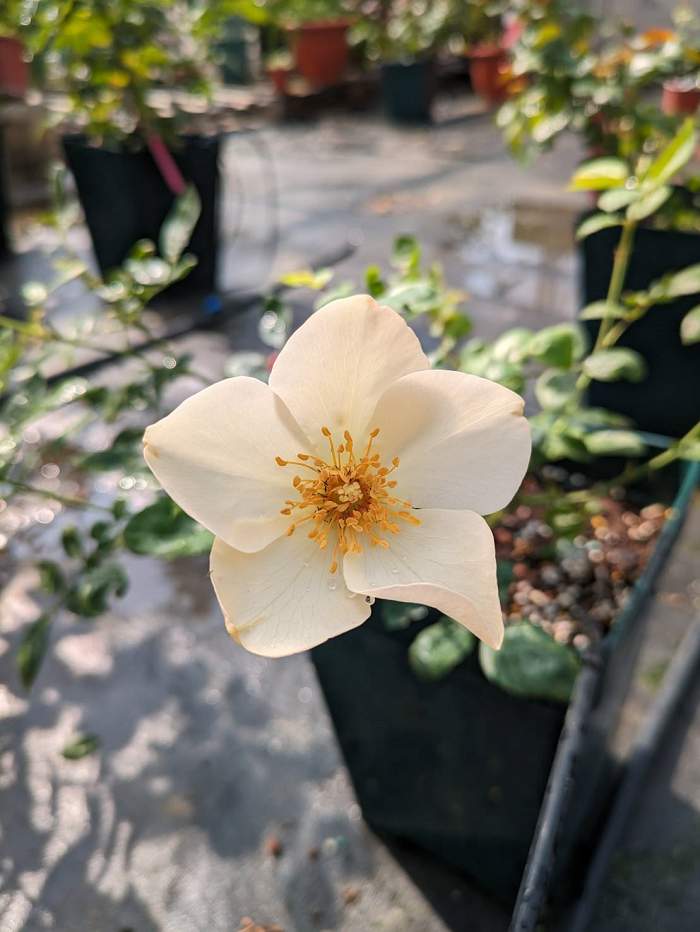 植株低矮緊湊的五瓣單瓣中輪花品種,初開偏乳黃色,隨者開放變為乳白,花有些微波浪和反捲,長勢中等。