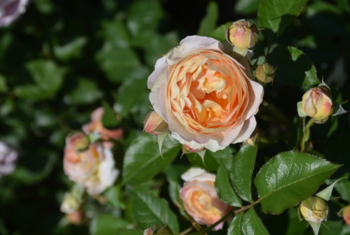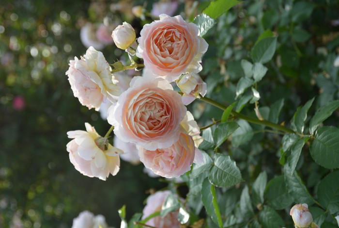 淡杏色的基底色上帶有淡粉紅色,圓滾的杯型簇生花朵,一莖多花成簇綻放。大馬士革融入果香,花香濃郁。甜美的姿態有讓人一見難忘的魅力。